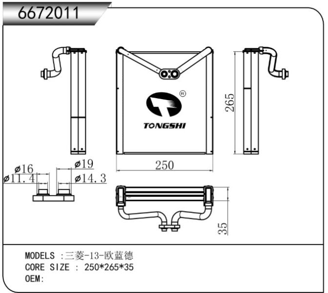 TONGSHI 6672011 - EVAPO MITSUBISHI OUTLANDER III/ASX (13-)