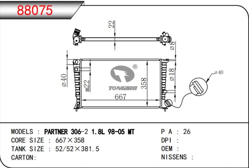 TONGSHI 88075 - RADIA CITROEN BERLINGO/PARTNER DIESEL (96>98) A/S
