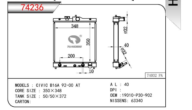 TONGSHI 74236 - RADIA HONDA CIVIC IV/CRX1.5/1.6 (91>) MANG 32 Ø FULL ALUMINI