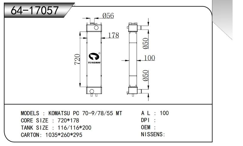 TONGSHI 6217057 - RADIA KOMATSU PC 70-9/78/55 MT 720X178X100