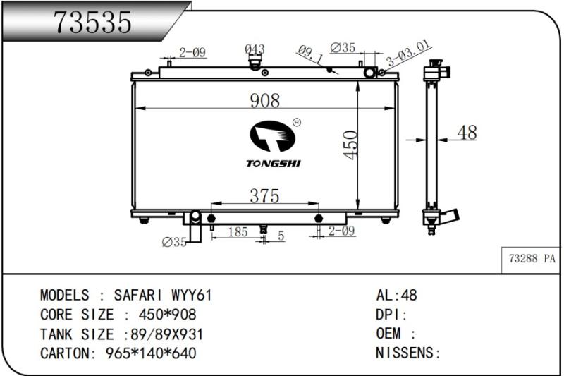 TONGSHI 73535 - RADIA NISSAN PATROL Y61 GR 2.8/3.0DI M/A (97> ALUMINIO 48MM