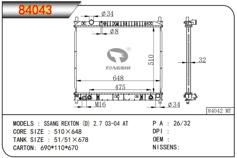 TONGSHI 84043 - RADIA SSANG YONG REXTON 2.7XDI (06>13 ) AUT