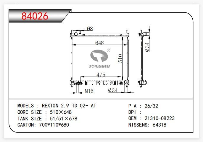 TONGSHI 84026 - RADIA SSANG YONG REXTON 2.9TD (02-06) AUT.