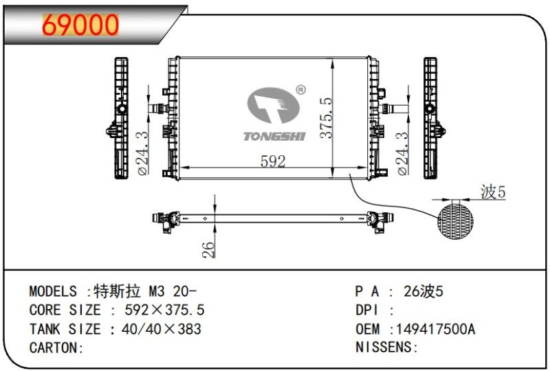 TONGSHI 69000 - RADIA TESLA MODEL 3 (594X358X26)